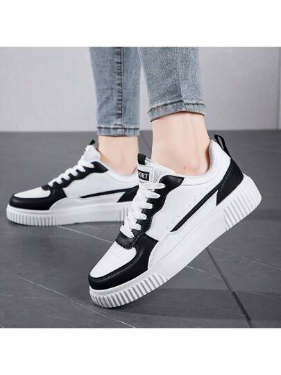 New Thick Sole White Sneakers For Women, Versatile Casual Platform Shoes, Couple Styles, All Seasons - Black and White - View 1