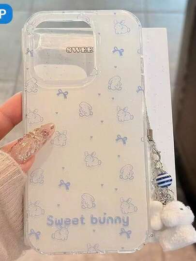 New White 17 Pro Max Phone Case, Elegant Niche Rabbit Design, Fashionable & Cute Cartoon Compatible With IPhone 16, Shock-Proof Protection Compatible With IPhone 15 Pro, Unique Phone Case Compatible With IPhone 14 & 13 - Multicolor - View 1