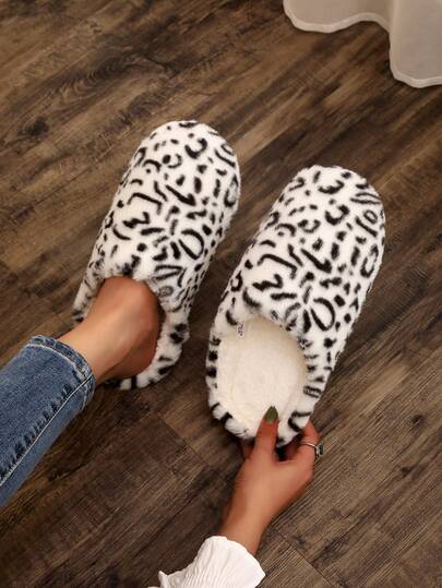 New Women Plush Printed Comfortable House Slippers, Autumn/Winter - Multicolor - View 1
