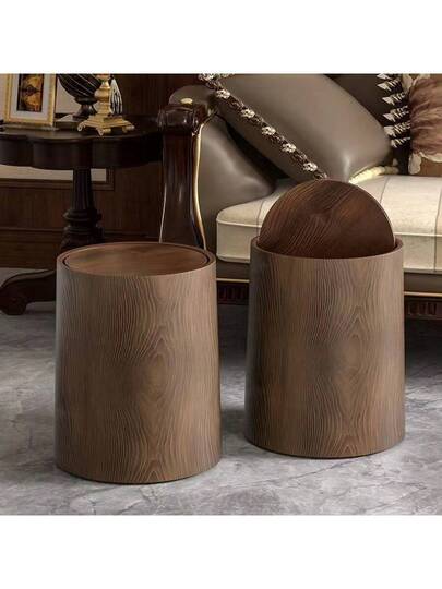 New Wooden Grain Trash Can, Household Living Room Bedroom Round Lid Sealed Garbage Bin, Odor-Proof Waste Basket, Luxury Paper Bin For Office Hotel Bathroom - Multicolor - View 1