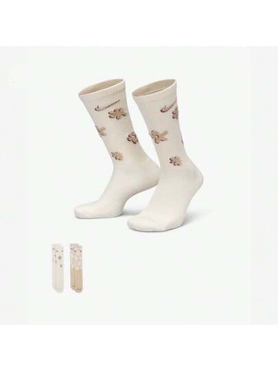 Nike 2 Pairs U NK ED PLS CSH CRW Socks, Unisex Crew Long Sock Promotional Package, FN9136-900 - Black - View 1