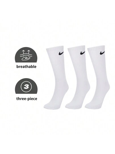 Nike 3pairs Men's And Women's Everyday Lightweight Crew Socks - Running, Workout, Basketball - Stylish Mid-Calf Socks - SX7676-100 - Black/White - View 1
