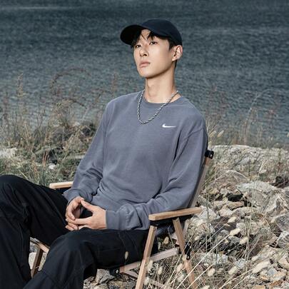 Nike French Terry Embroidered Casual, Versatile, Comfortable, And Durable Pullover Crewneck Sweatshirt, Unisex. - Dark Grey - View 1