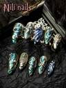 10pcs Halloween Limited Edition Handmade Nail Art Stickers, Create Unique Bohemian Style Nails! This Nail Sticker Set Includes Almond Shape, Chrome Gold, French, Y2K, Purple-Red, Cat Eye, 3D Diamond Carving And Other Styles, Made Of Full Coverage Acrylic Material, Designed For Women And Girls, Comes With Gel Stickers And Nail File.