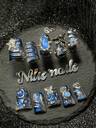 10pcs/Set Handmade Almond Y2K Baddie Style Press On Nails, Gold&Blue Cat Eyes Press On Nails Blue&Orange Tie Dye Bare Gradient Dyeing Handmade Metal Drawing Geometric Patterns With 3D Crown&Diamond Design Full Cover False Nails For Womenhnlged Occasions Daily Wear Great Gift ForWomen And Girls, Suitable For Use At Party Music Festivals, With 1 Jelly Pad And 1 Nail File