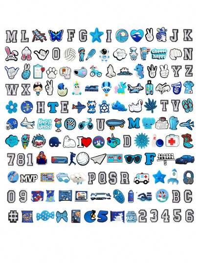 Non-Repeat 10-50Pcs Blue And White Series DIY Charms For Shoe Key Chain Sandals Beach Bags, PVC Shoe Charms For Clogs Premium Quality Popular Decorations Accessories Great Gifts For Christmas, Birthday, Party - Multicolor - View 1