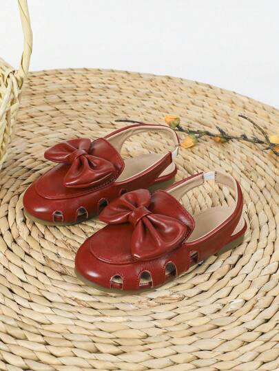 Non-Slip And Waterproof Princess Style Hollow Out Floral Design Children's Flat Shoes, Soft And Comfortable, Suitable For Girls - Burgundy - View 1