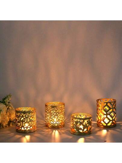 Nordic Golden Geometric Hollow Iron Candlestick Creative Scented Candle Cup Home Decoration - Multicolor - View 1