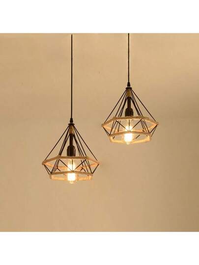 Nordic Retro Iron Creative Pendant Light, Suitable For Hallway, Living Room, Dining Room, Hallway, Hemp Rope Rhinestone Pendant Light - Camel - View 1