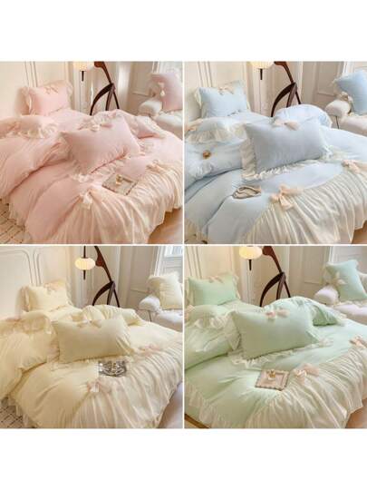 2/3 Pcs Set Chiffon Bow Ruffle Duvet Cover (1 Duvet Cover, 1/2 Pillow Case), French Polyester 3D Bow Bedding Set, Premium Soft & Comfortable, Year-Round Use, Machine Washable, With Corner Ties, Suitable For Bedroom, Home And Hotel - Multicolor - View 18