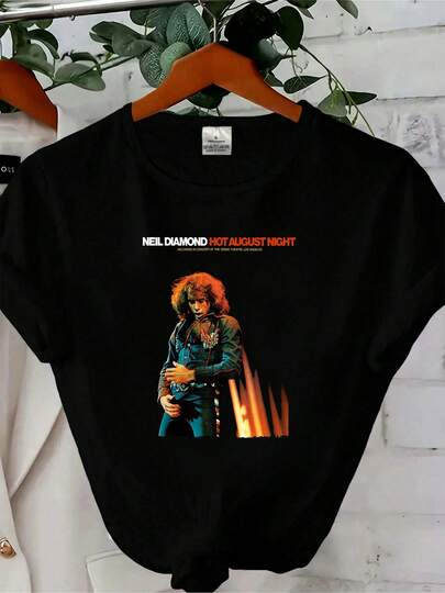 180g Pure Cotton Hot August By Night Neil Diamond T Shirt Crunchy Granola Suite Cracklin' Rosie Top For Everyday Wear Print Round Neck Short Sleeve Streetwear Graphic Versatile Soft Fashion Unisex Summer Casual Stylish For Men Breathable For Women Comfortable Slightly Stretched Designer Clothes - Black - View 1
