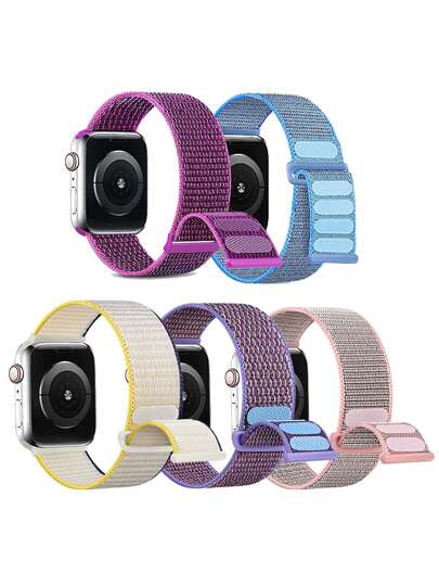 Nylon Sport Band Compatible With Apple Watch Band 38mm 40mm 41mm 42mm 44mm 45mm, Adjustable Breathable Women Men Braided Sport Elastic Wristband Strap Compatible With Series 8/7/6/5/4/3 SE - Multicolor - View 1