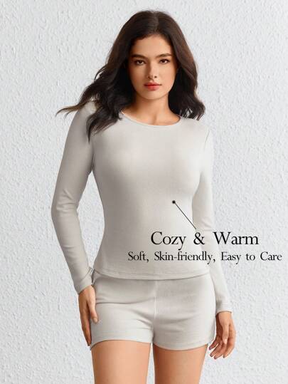 Ocili Leisure Solid Fine Knit Lounge Set - Light Grey - View 1