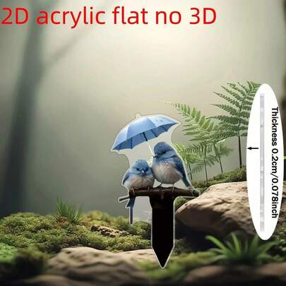 One, 2D Bird Garden Decoration – Charming Bluebird Design Under Umbrella For Artistic Outdoor Lawn And Yard Decorations Electric, Perfect For Gardening And Festival Displays, Seasonal Showcase | Artistic Bird Design | Outdoor Material - A - View 1