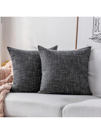 One Black & Grey Starry Pattern Decorative Pillowcase (Pillow Core Not Included), Fashionable And Modern Square Chenille Cushion Cover, Suitable For Daily Use In Home Sofa Bedroom Bed Car, Universal For All Seasons - Dark Grey - View 2