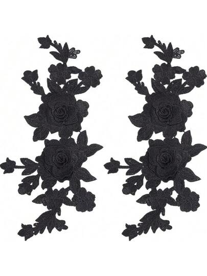 One Black Water Soluble Embroidery Flower Patch For Decoration Or Repair - Black - View 1