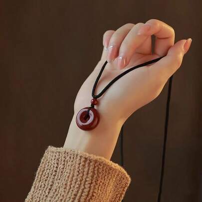 One Handmade Red Natural Stone Cinnabar Pendant Necklace, Fashionable Cinnabar Women's Jewelry, Good Luck Long Necklace, Suitable For Daily Wear. Holiday Gift For Loved Ones And Friends, Red Chinese-Style New Year Necklace - Red - View 1