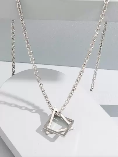Fashionable and Popular Men Geometric Charm Necklace Stainless Steel for Jewelry Gift and for a Stylish Look - Silver - View 1