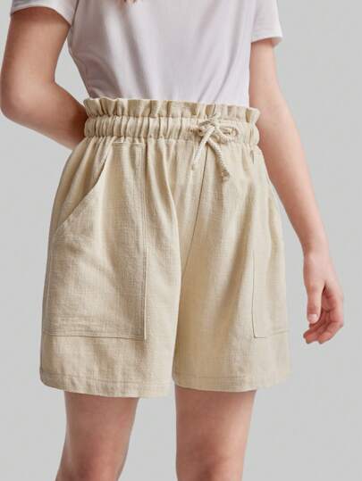 Ontre Tween Girls Loose Casual Ruffle Waist Shorts - Apricot - View 4