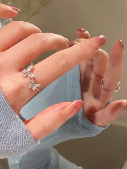 Open Butterfly Ring Jewelry Light Luxury Style Butterfly Ring Unique High-end Feeling - Silver - View 1
