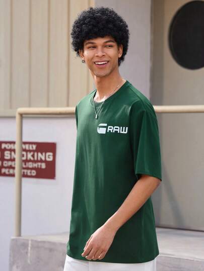 Open Phase Men's Fashionable Street Style Graphic Letter Print Round Neck Short Sleeve Casual Loose Versatile T-Shirt - Dark Green - View 1