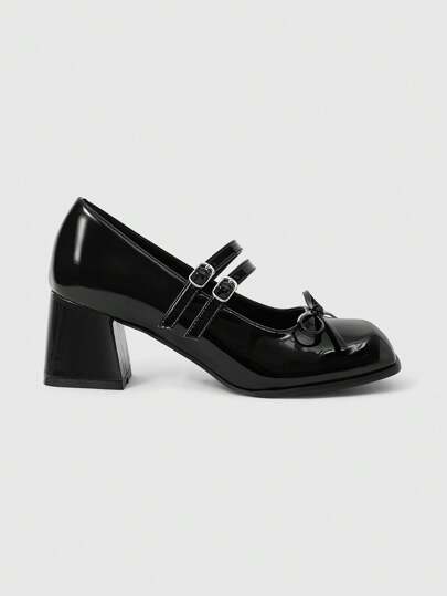 ROMWE Kawaii Women's Square Toe Chunky Heel Pumps, Elegant & Versatile, Comfortable & Stylish, Suitable For Office Wear Or Special Occasions, An Ideal Mother's Day Shoe - Black - View 1