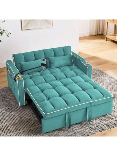 55.51 Inch Versatile Foldable Sofa Bed In 3 Lengths, Modern Sofa Sofa Sofa Velvet Pull-Out Bed, Adjustable Back And With USB Port And Ashtray And Swivel Phone Stand (Green) - Green - View 6
