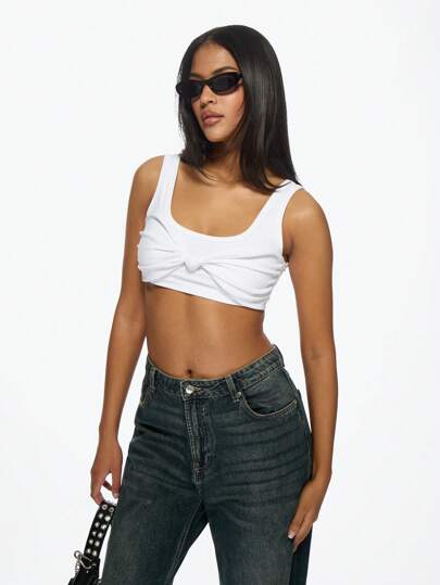 MISSGUIDED Twist Front Crop Tank Top Sleeveless Summer Athletic Yoga Sports Bra Style Slim Fit Fashion Casual Workout Gym Top - White - View 5