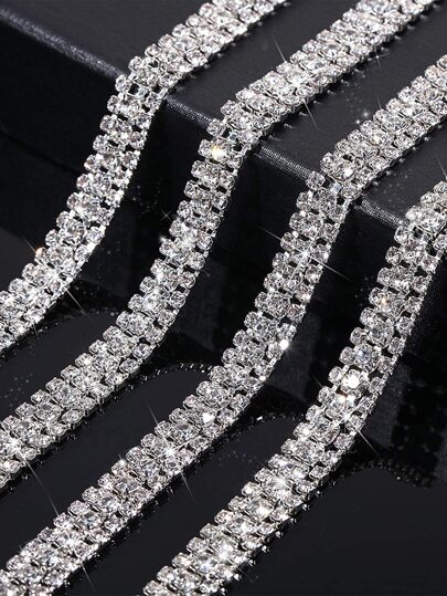 1pc/2pcs-1 Size 3 Rows Silver-Based White Rhinestone Chain With 0.9cm Width - Silver - View 5