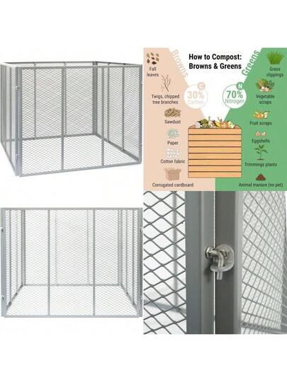 Outdoor Garden Composter Bin 800L And 100x100x80cm Metal Mesh For Open Air Composting Of Green Waste - Silver-coloured - View 6
