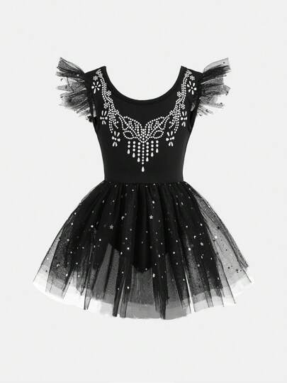 SHEIN Young Girl Black Pettiskirt Ballet Dance Dress, Cute Princess Elegant Ballet Tutu Skirt, Sports Costume - Black - View 1