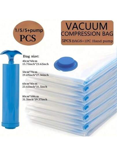 Oversized Vacuum Transparent High-Quality Storage Compression Bags, Suitable For Travel Essentials, Clothes, Bedding, Blankets, And Other Portable Storage Bags. Manual Vacuum Pump Compression Bag Set, No Electricity Required, Reduces Space Usage. - Blue - View 1