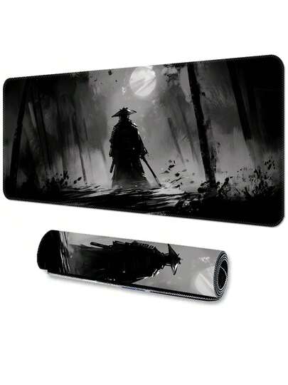 Oversized Watercolor Samurai Mouse Pad, Gaming Desk Mat, Large Keyboard Pad, Washable, Rubber Non-Slip Bottom, Stitched Edges, Gift Mouse Pad, Desk Protector, Study Pad, Multiple Sizes Available, Computer Keyboard Mat, Laptop Pad Desk Accessories Office Supplies Office Office Desk Accessories Mousepad Mouse Pad For Desk - Ink Warrior - View 1