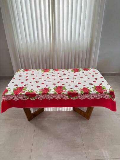 Oxford Fabric Tablecloth For Tables With 4 Or 6 Printed Chairs Home And Decor - Red Flower - View 1