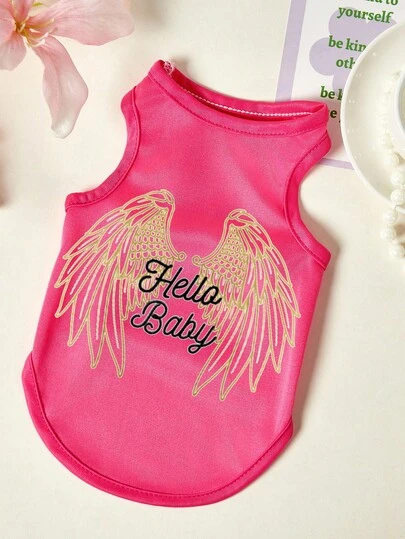 PETSIN 1pc Gold Wing Letter Printed Pet Vest, Breathable And Skin Friendly, Rose Red Style - Hot Pink - View 1