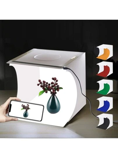 PULUZ 20cm Foldable Portable 550 Lumens Photography Lightbox Kit, Includes 6 Color Backdrops (Black, White, Yellow, Red, Green, Blue), Unfolded Size: 24cm X 23cm X 23cm - White - View 5