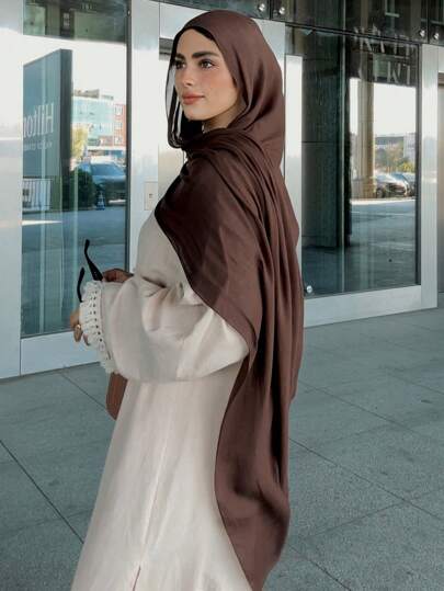 1pc Muslim Women Headscarf, Solid Color Chiffon Scarf, Suitable For All Seasons Everyday Wear - Brown - View 1