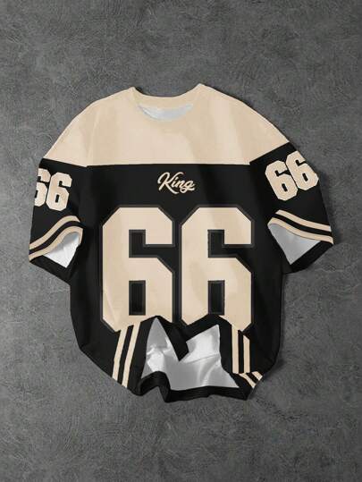SHEIN Bolty Tween Boy Casual Minimalist Short Sleeve Crew Neck T-Shirt, Suitable For Summer Baseball Jersey Number 66 Jersey King Jersey Jersey Boys Jersey - Multicolor - View 1
