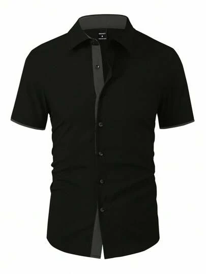 Manfinity Mode Plus Size Men's Casual Solid Color Short Sleeve Shirt - Black - View 1