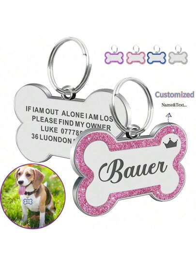 Dog Tags Engraved For Pets Personalized Dog Tag With Any Name & Text Dog Collar Custom Glitter Dog Name Tag Bone Dog ID Tag For Puppy Pets,Customized Pet Collars, Leashes & Harnesses - Crown - View 1
