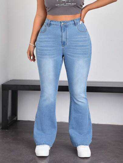 SHEIN EZwear Plus Size Simple Casual Flare Leg Jeans - Light Wash - View 1