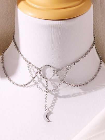 Moon Decor Chain Necklace - Silver - View 1