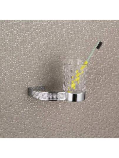 Wall Mounted Bathroom Set - Toothbrush Holder, Rail Rack, Shelf Accessories In Gold/Chrome And Chrome Paper Holder - Perfect For Neat And Tidy Bathrooms - Toothbrush Holder C - View 2