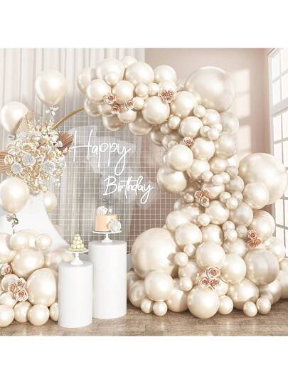 Pearl White Balloons, Pearl Beige Balloon Arch, Double Layer White Balloons (18/10/5 Inch, 61pcs Total), Ivory White Balloon Wreath, Suitable For Wedding, Bridal, Birthday, Anniversary Decoration - Multicolor - View 1