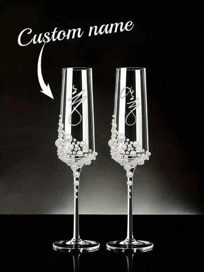 Personalized Bride Champagne Flute, Faux Pearl Crystal Glass Champagne Flute, Customized Champagne Flute For Bride And Bridesmaids - Reusable, Dishwasher , Customized Champagne Flute With Bow / Bride And Bridesmaids Wine Glass / Wedding Party Glassware / Wedding Supplies / Champagne Flute / Champagne Coupe / Bridesmaid / Bride / Maid Of Honor / Mother Of The Bride / Bachelorette Party / Birthday Party - Multicolor - View 1