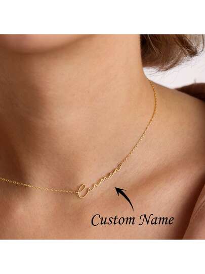 Personalized Custom Signature Fine Chain Necklace DIY Custom Letter Brand Jewelry Birthday Gift Mother's Day Gifts,Gold,Stylish,Colorful,Vintage,Simple,Unisex - Multicolor - View 1