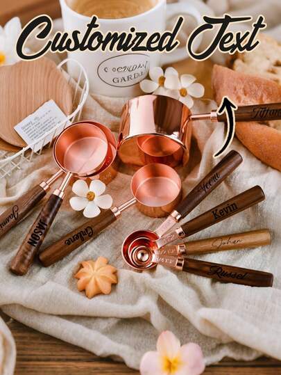 Personalized Engraved Measuring Cups Measuring Spoons, Personalized Engraved Measuring Cups Spoons Set With Wooden Handles,Kitchen Utensil,Spot Baking Stainless Steel Measuring Cup Measuring Spoon Baking Tool Walnut Rose Gold Measuring Spoon Measuring Cup - Multicolor - View 1