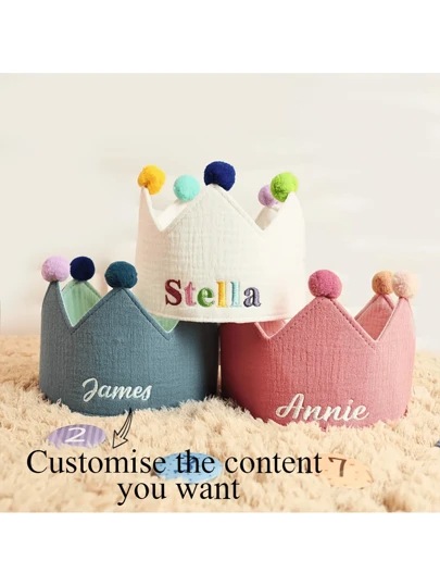 Personalized Hand Embroidered Birthday Crown, Baby First Birthday Party Hat, Birthday Crown With Name, Toddler Birthday Crown, Party Crown Back To School - Multicolor - View 1