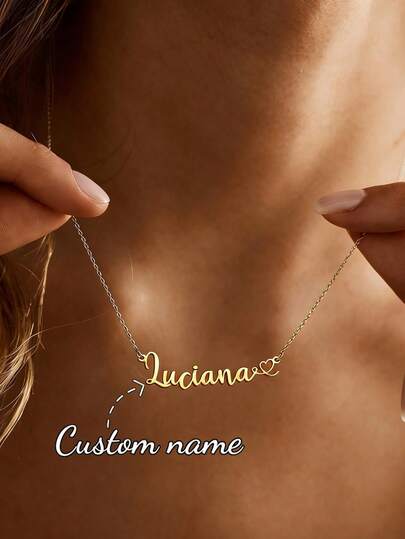 Personalized Matte Name Heart Necklace, Stainless Steel Pendant Customized Letter Necklace, Birthday Jewelry Gift For Women - Gold - Normal Chain 1 - View 8