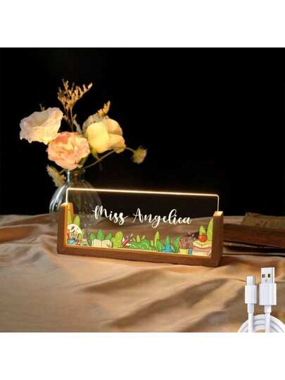 Personalized Name Desk Plate For Teacher | Custom Name Sign For Desk | Lighted Acrylic Nameplate | Teacher Appreciation Gift | Office Decor Gifts Birthday Graduation - Multicolor - View 1